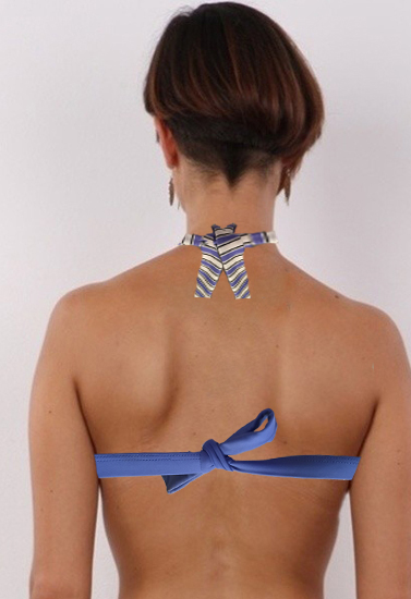 The Beautiful Blue White Striped Removable Cups Halter Bikini Top is exactly what your summer calls for or your vacation or your satisfaction.This bikini is a halterneck style boasting sturdy wire free and removables cups for all the lift and support you can dream of. Wider halter straps tie behind the neck and compliment the sexy cutout at the center. This style is called "Hamptons" for a reason: for its beachy, nautical print. A wider straps band snap closure fastens at the back so fret not how big that wave is. Comfy halter straps, a sexy cutout and a nautical vibe come together in the Beautiful Blue White Striped Removable Cups Halter Bikini Top.- Made by polyamide and elastane material