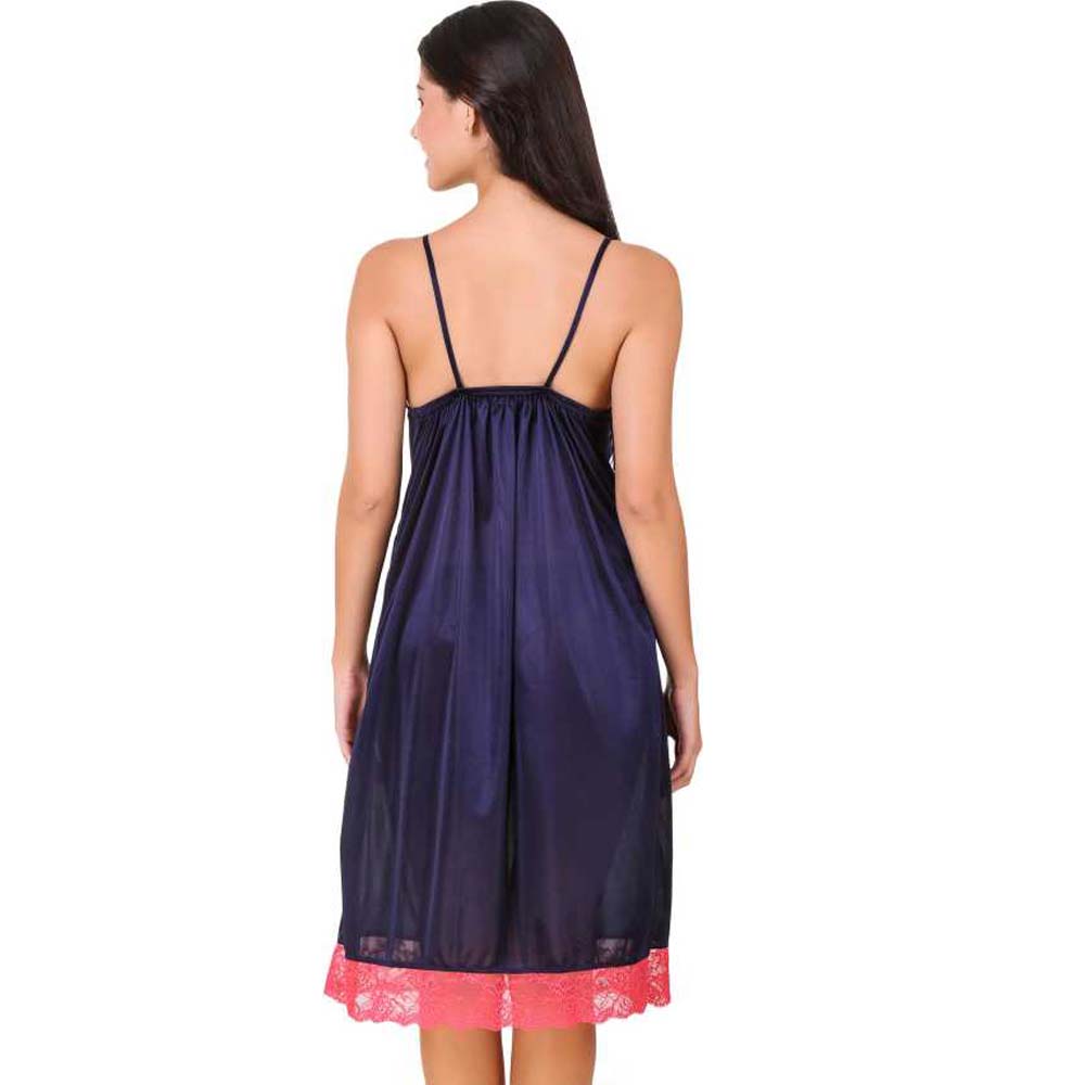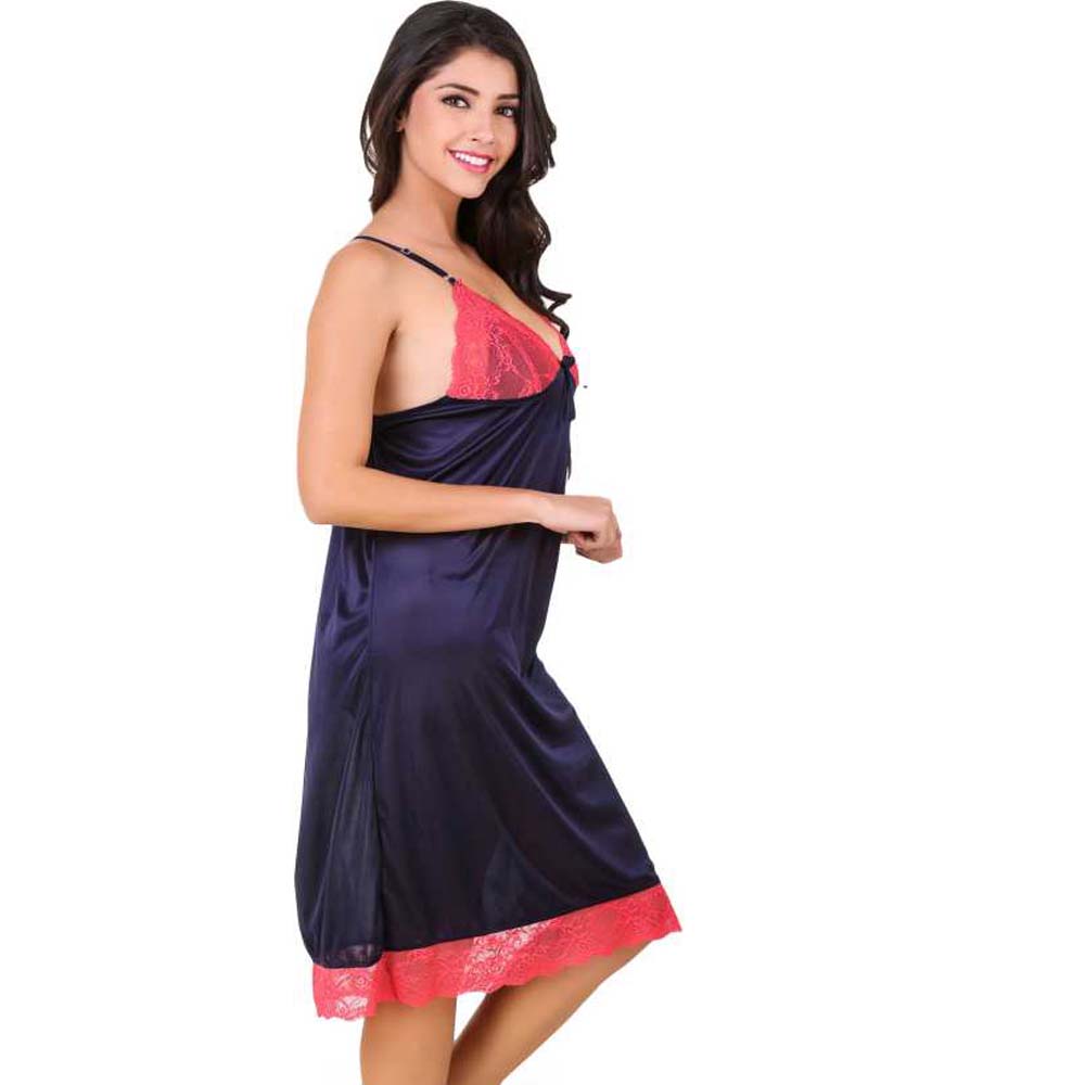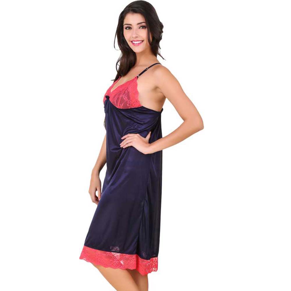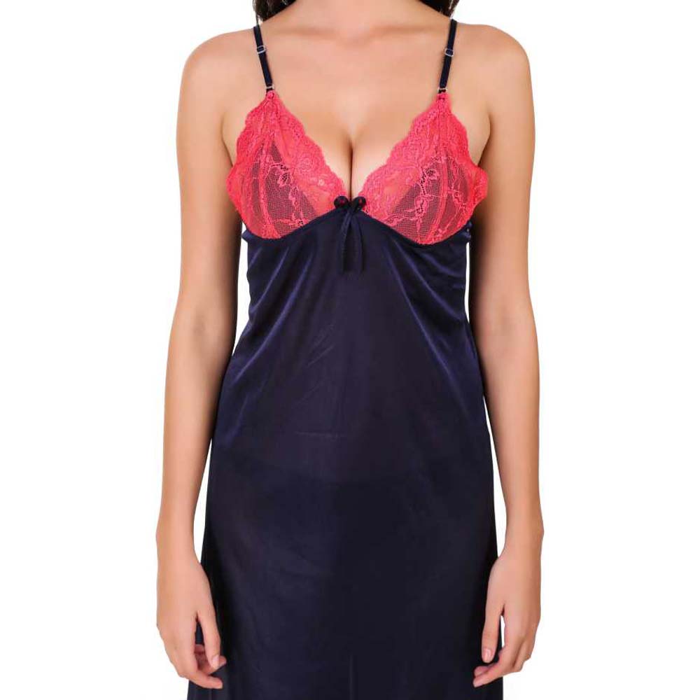 Add some color to your nights with this Comfort Fit Pink Lace Royal Blue Nighty Sleepwear . It is super comfortable to wear. Easy to slip on for a sophisticated elegant evening. The fabric slides smooth on your skin heightening sensitivity & the side slits let you move freely. The lurex threads woven in the lace add a hint of subtle shimmer complementing the pretty trinket at the front. It's perfect for your wedding night or honeymoon. The cute big satin pink bows looks very beautiful and awesome.  This Comfort Fit Pink Lace Royal Blue Nighty Sleepwear is perfect for a romantic night. It has gorgeous sheer floral lace cups that will show the perfect amount of skin.