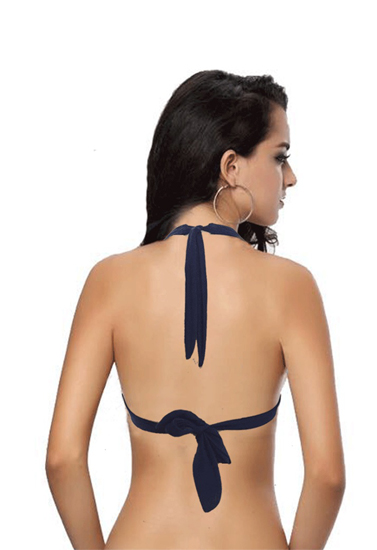 Feel confident and comfortable in this Dark Blue Color Halter Beach Bikini Top. It keeps you looking stylish and fashionable at the pool or the beach. This halter style bikini top features slots to remove cups and straps tie around your neck and back, halter-style, to create a completely different look. Made of polyamide and elastane for long wear. You can coordinate this piece with your favorite bikini bottoms for endless possible combinations.- Tie Halter Neck