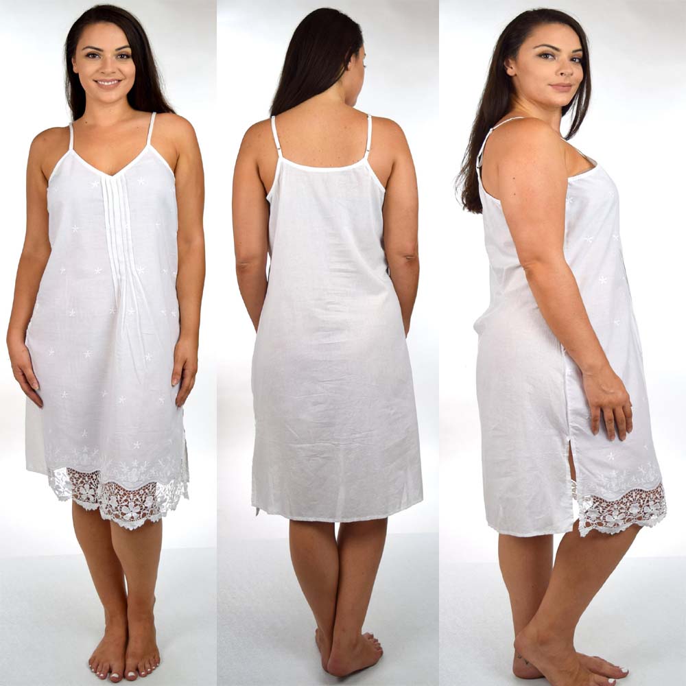 Elegant cotton sleepwear for women  has an Art Deco aura.This nightwear is elegant and refined and especially loved by women who appreciate high quality Cotton fabric .The cut is A-line and length is to knee.Thin shoulder straps won’t fall off your shoulders or break.The entire front of this cotton gown has been pin tucked .