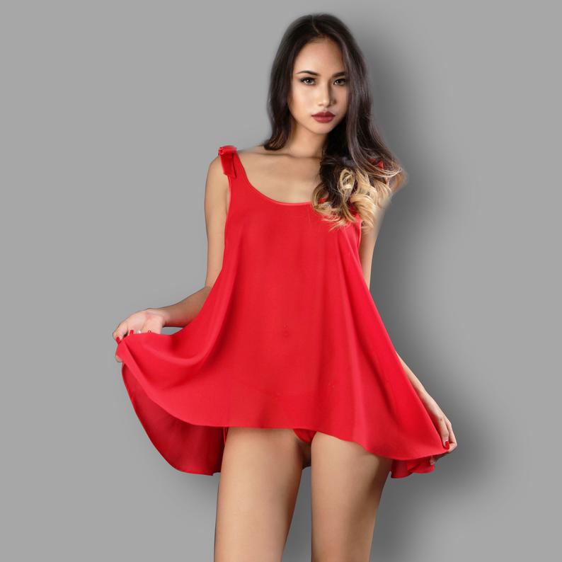✓Brand : Snazzyway ✓SKU : PASAN 741 Z ✓Fabric : Chiffon ✓Size : S,M,L,XL ✓Color : Red ✓Fit : Total Comfort ✓Pattern : Babydool , Camise