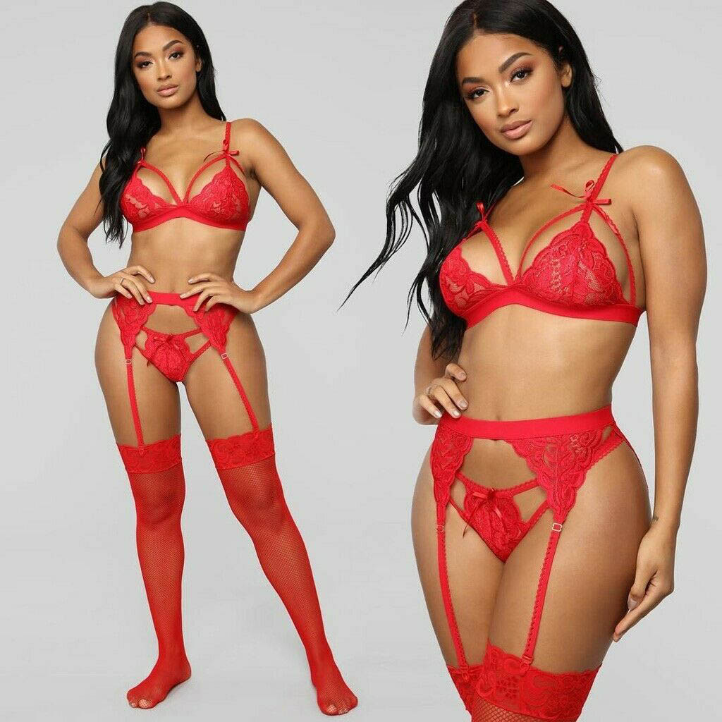 ✓SKU: SOCB67FD ✓Includes: Bra, Panties & Garter ✓Size:S,M,L ✓Color: Red ✓Seams: Double seaming ✓Style:Lingerie set