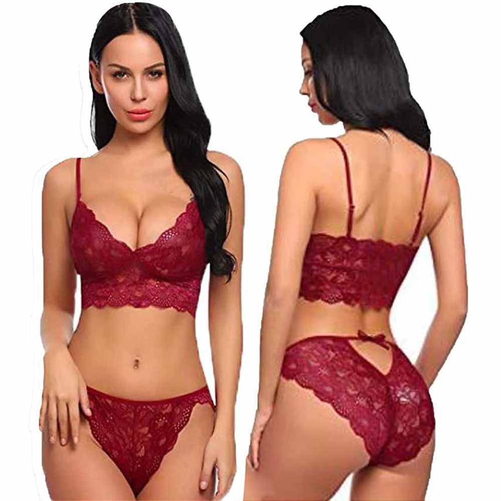 ✓ Brand: Imported ✓ SKU: lace@comfy ✓ Brief Size : M,L,XL ✓ Color : Dark Maroon ✓ Pattern : Lace Bra Set