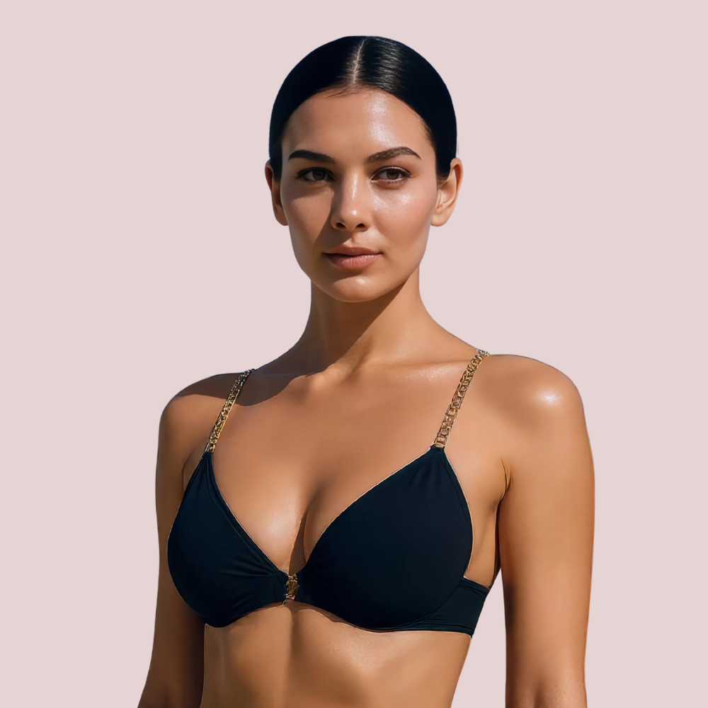 Glam Black Bikini Top with Gold Chain Straps