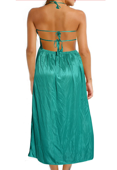 This Ladies Halter Sheer Satin Nighty With Floral Embellished Lace is a great burst of fresh and unexpected color while still looking classy and elegant. Truly a stunning piece all around. The sea green color is very beautiful, this nightwear has halter neck ties straps and tie at back band, which is surely very sexy and cool to look. Front see through floral lace design attracts a lot. Moreover, the long length of this nightwear is perfect to wear. Add this amazing piece of nightwear to your closet today. You will sure to love it.