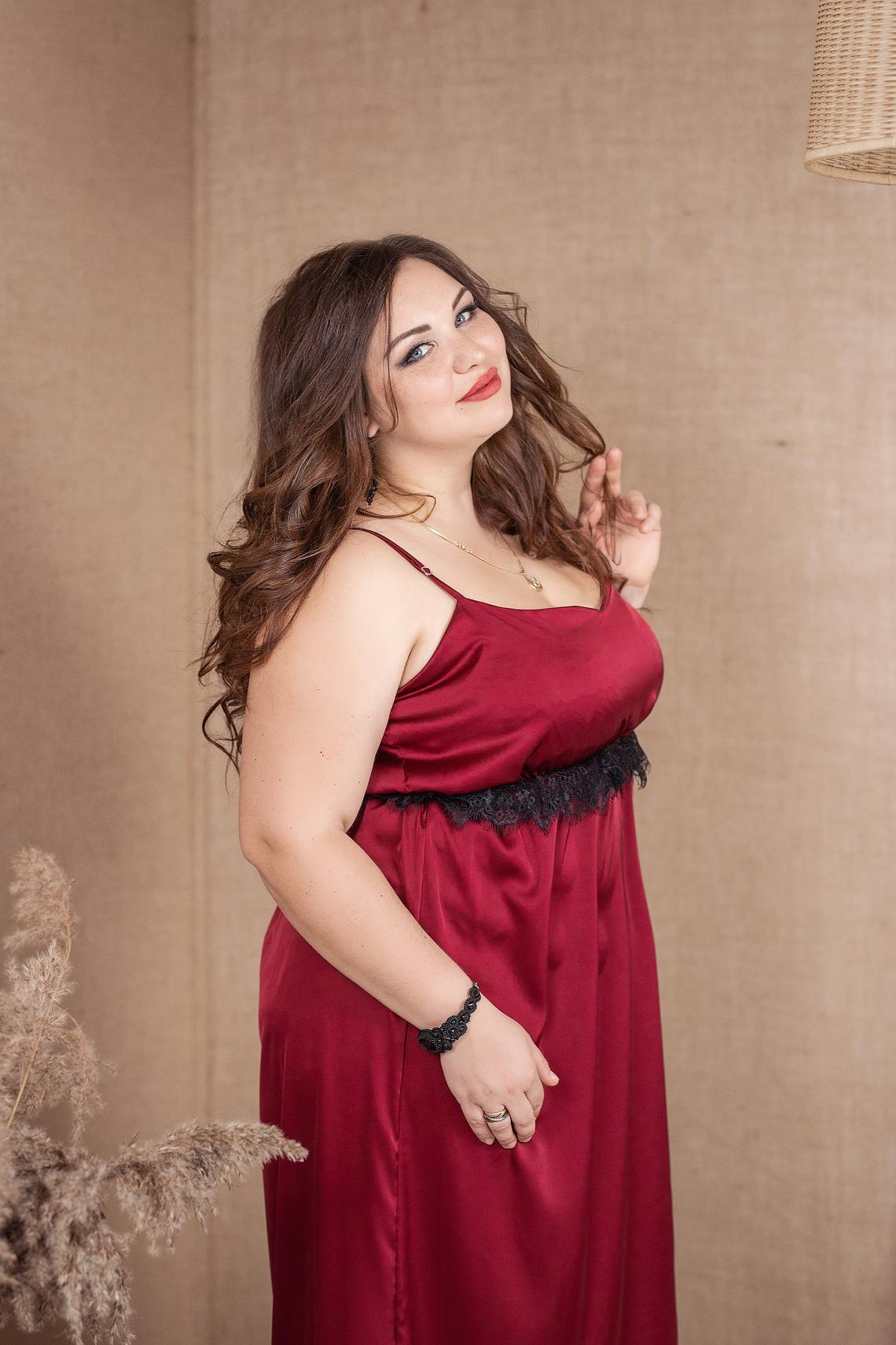 Long Plus size nightgown Burgundy color