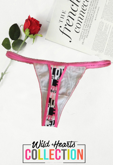 "LOVE" Print Pinkish Cotton V-String In XS
