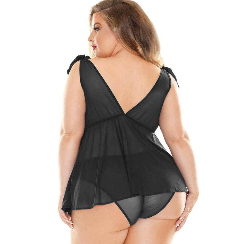 ✓SKU : SNSTN189 ✓Fabric : Crepe ✓Size: 4XL,5XL ✓Color : Black ✓Feature : See through ✓Fit : TotalComfort ✓Pattern : Special night lingerie