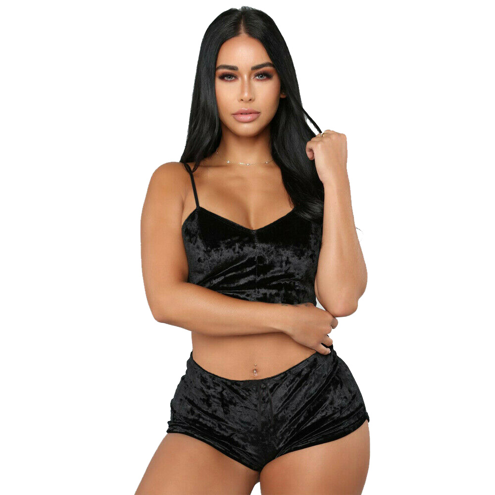 Plus size Sexy Velvet cami top shorts set1