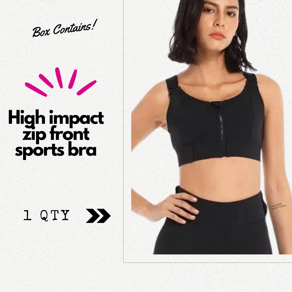 • 1 High impact zip front sports bra