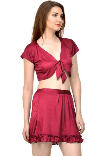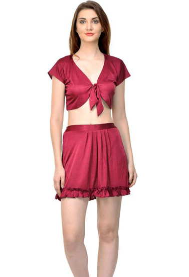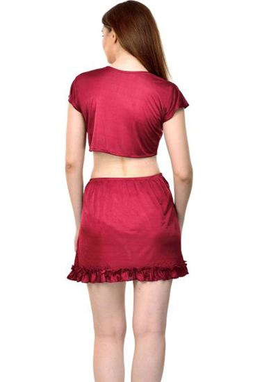 ✓Brand : Imported ✓SKU : SMMBC08 ✓Fabric : Satin ✓Size: Free Size(Fits-s,m,l) ✓Color : Maroon ✓Pattern : Babydoll Dress