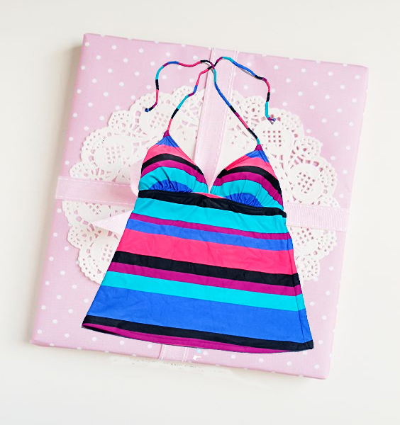 Snazzy Printed Multicolour Swimsuit Padded Tankini Top For Ladies A lining  print is classic, full  multicoloured  and luxury on excess. This v-neck padded  printed swim top comes with integrated soft cups, bust lining, and elasticated underbust and adjustable straps. Allow yourself a little luxury whilst you’re looking gorgeous swimwear. Padded Swimwear tankini top gives a gorgeous look. Made up of Nylon and Elastane.