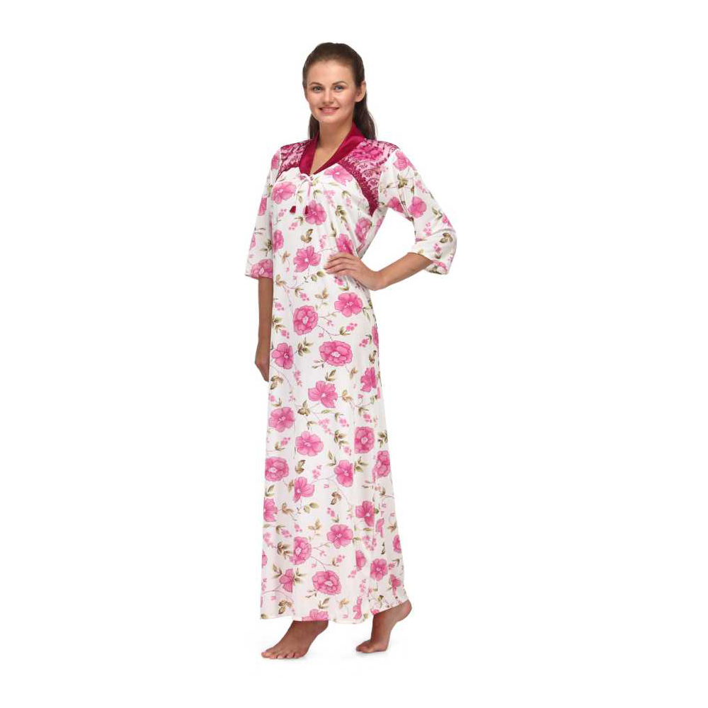 Floral Print Full Length Pink Women's Nightgown which you can enjoy an uninterrupted sleep by slipping into this nightgown . Featuring a cool retro print and half sleeves lends a sensual feel to this nightwear .