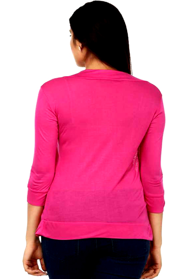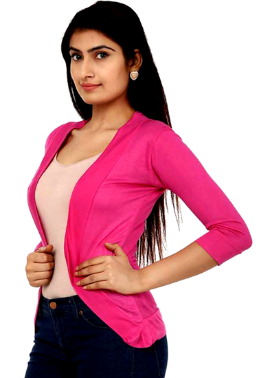 Why to invest in Solid Stylish Pink 3/4 Sleeves Shrug Solid Pink fashion fit 3/4 sleeves shrug ????