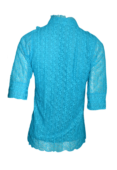 ✓Brand : Ssereree ✓SKU : NetLace@Top ✓Fabric : 85% Polyester & 15% Spandex ✓Size: M ✓Color : Sky Blue ✓Feature : 3/4th Sleeve, Net Lace Pattern, Round Neck ✓Fit : Regular Comfort ✓Pattern : Top