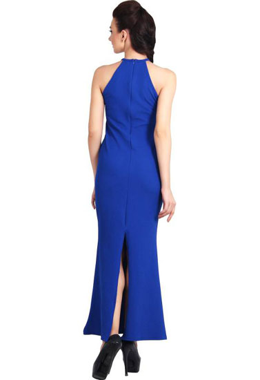 Finding the dress for the particular occasions which fits you well and make you look good? Stunning Blue Bridesmaid Sleeveless High Neck Prom Gown could help you. it is made by polyester and lycra material which gives you comfort all day along and non binding against skin. Wearing this elegant and professional women's dress, dress for success. It has an elegant appearance and is a compliment to most body types. The high neck dress with the sleeveless of the neck, which can be from the elbow to the elbow. It is ideal to wear to work, attend a formal occasion or stay overnight in town. This elastic fabric makes it comfortable to wear all day. The woman's long dress has a burning bottom. Both high heels and flat shoes look beautiful. It allows your gown to keep its shape in shape.Important Features