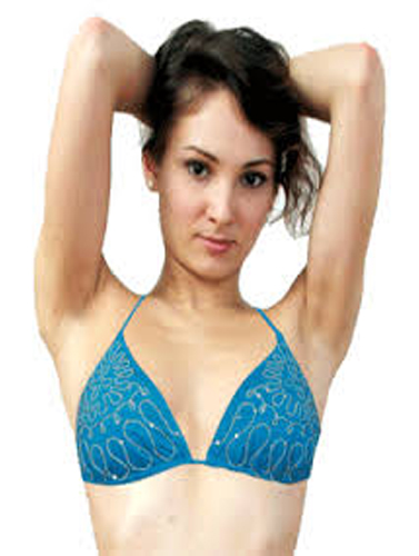 This Stylish Thread Embroidery Triangle Halter Bikini Bra is a true beach sensation. It is made out of the ultra-stretchable polyamide fabric for significant comfort fit. The thread embroidery and full shape settled triangle cups give a great shape and sexy look. It has halter straps with contrasting bright Sky blue color. The fabric is weaved with desired thickness for coverage and the bright finish adds on to the look.Why Halter Bikini Top ??