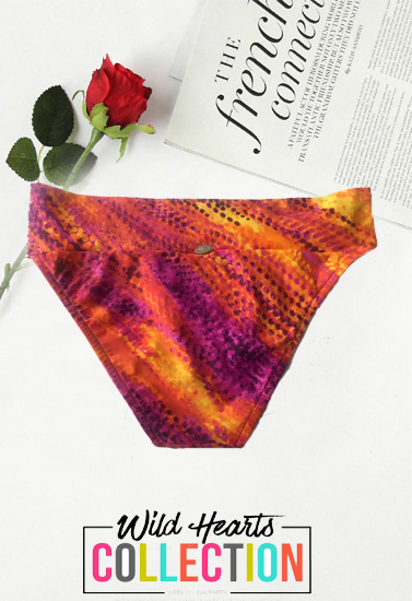 Step out in style this summer with the Sunsets Brazilian Front Side Scrunch Bikini Bottom. The fashionable and dotted design provides control in the front to flatter your curves. The side scrunch waistband bottom bikini gives moderate coverage all over, with a fun orange and purple print that pairs effortlessly with any solid color top. The bottom features a stretchy nylon and spandex blend that moves with you. The moderate coverage bikini bottom pairs effortlessly with a matching halter or bandeau tops as well as triangle bikini and tankini top styles. Coordinating and contrasting styles are sold separately.- Made by nylon and spandex material