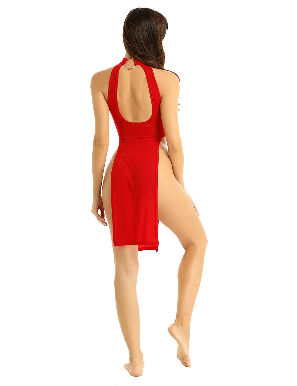 Floaty and feminine it may be, but don't underestimate this dress provocative powers. With both side cuts revealing a plenty of skin, and sheer crepe over your curves, it's teasingly revealing, teamed with the matching panty, or with nothing at all.