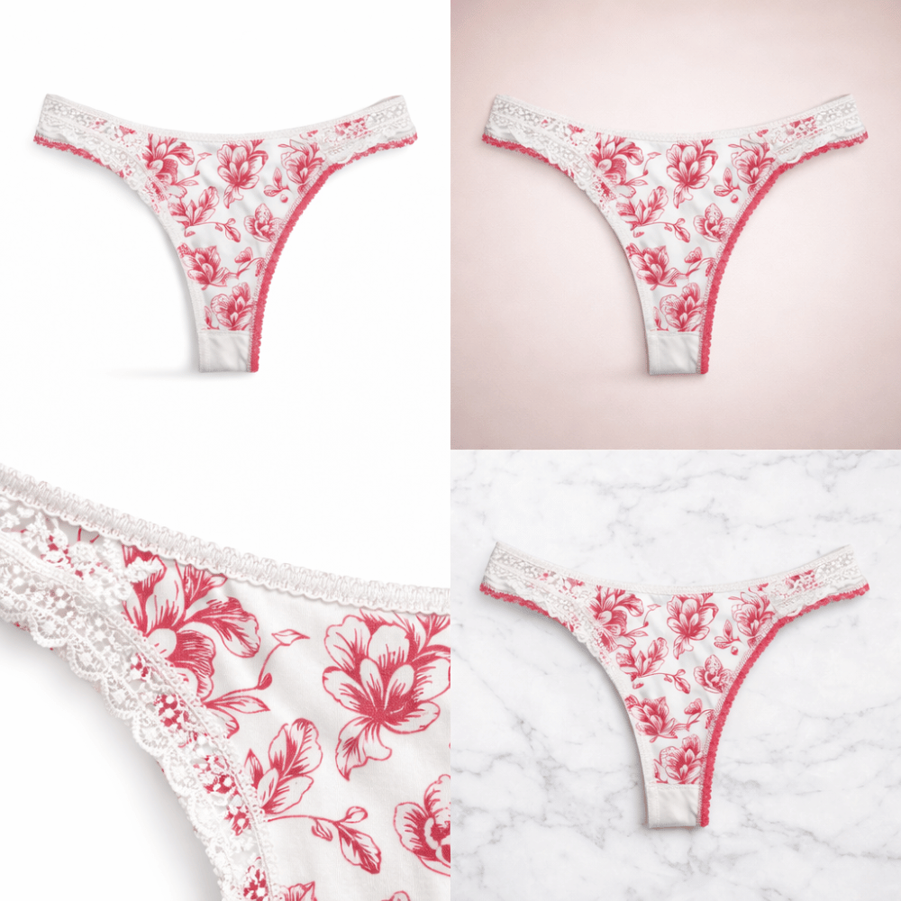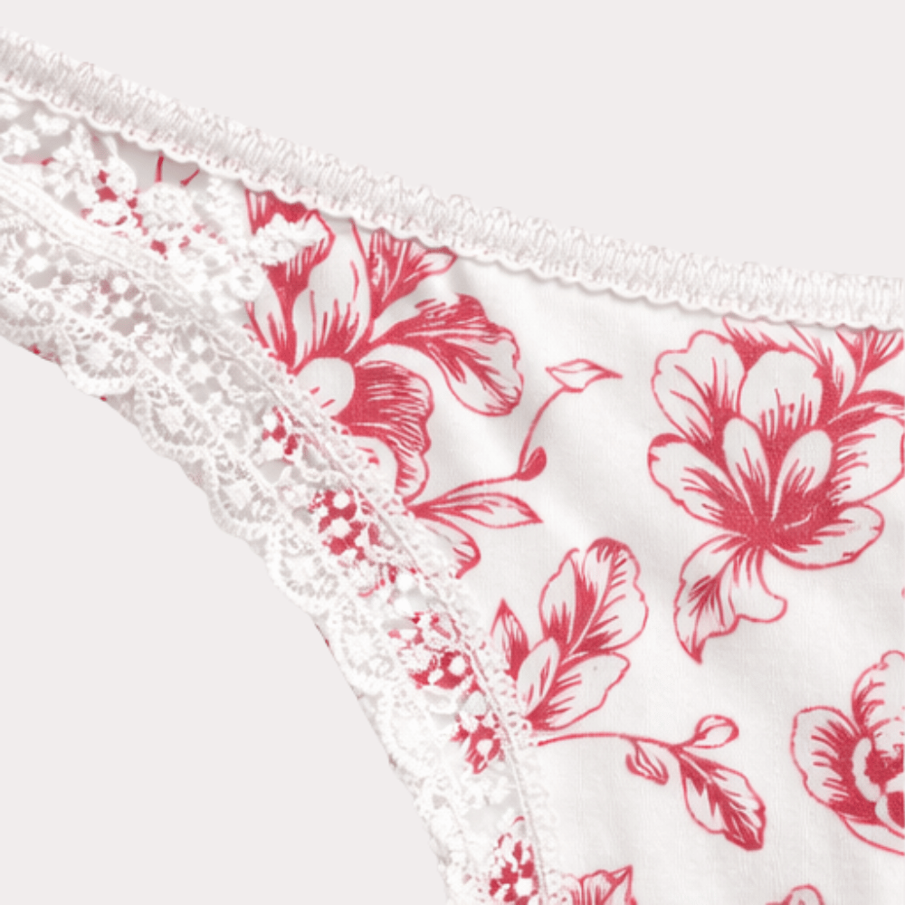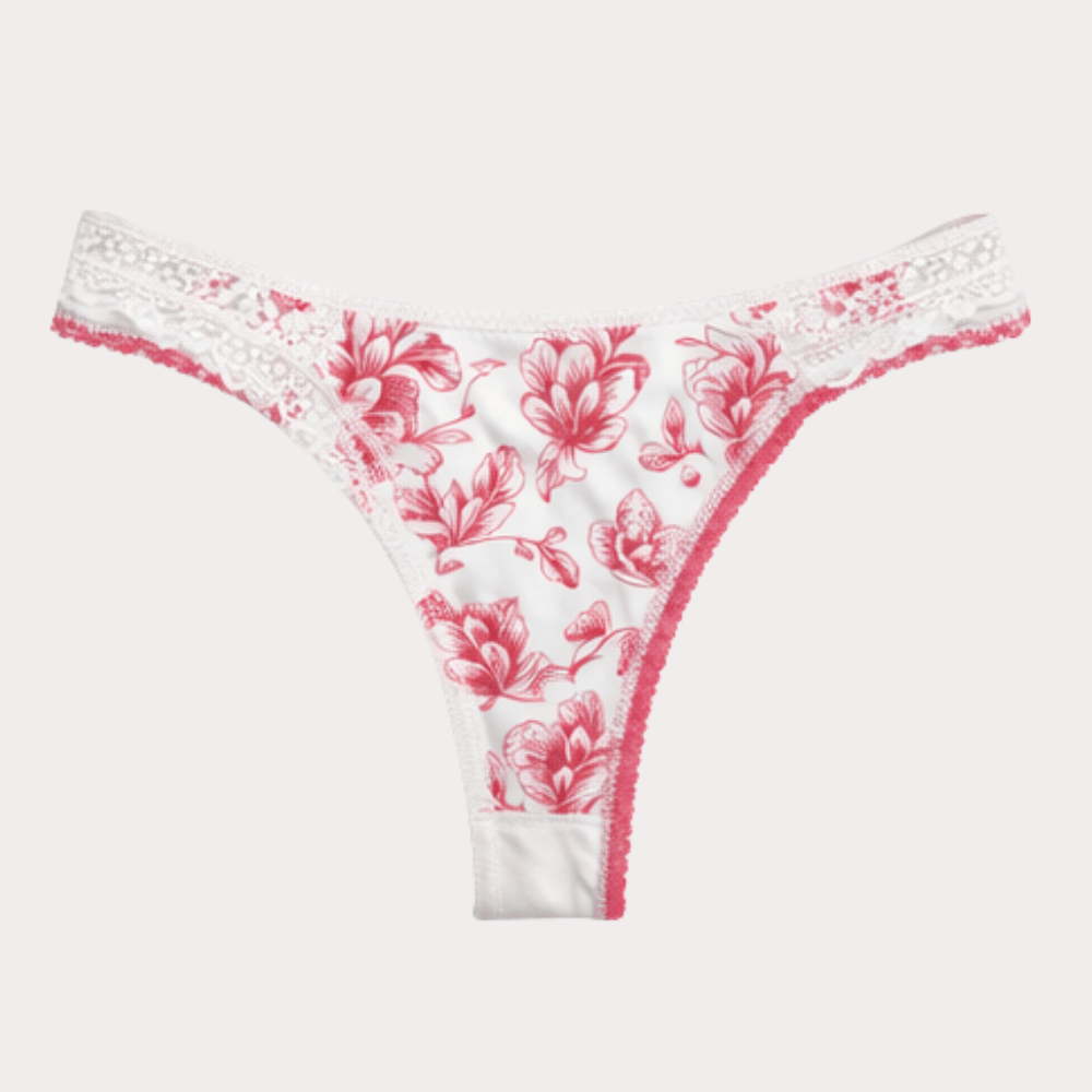 Soft white panty featuring coral floral prints, delicate lace waistband, and comfortable breathable fabric for everyday wear.