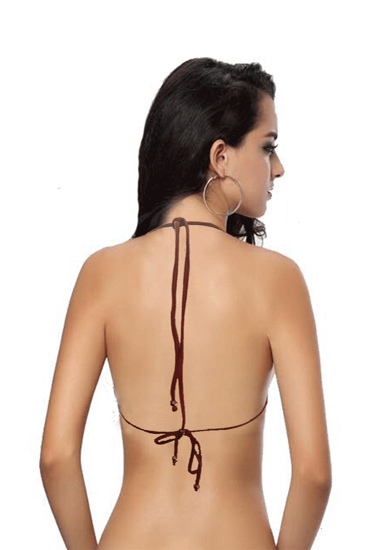 Feel good and look amazing at the beach or poolside wearing this flattering Women's Brown Peach Crochet Design Bikini Top. Bright, playful solids and trendy design make this perfect for the vibrant young woman in all of us. The string bikini top is crafted with soft and comfortable 95% polyester, 5% metallic fiber crochet. The lining is made with 80% polyamide 20 % elastane materials. Its crochet fabrication is complemented with alluring metallic beaded tassels and contrasting straps for a truly glamorous look. The top secures at the neck and the back for secure wear. The swimming bikini top can be easily paired with the matching crochet bikini bottom. It is available in brown peach crochet with an aqua contrast lining.- 95% polyester 5% metalized fiber