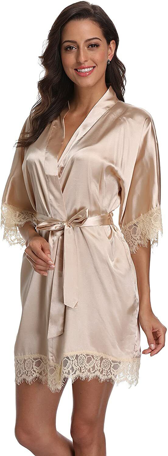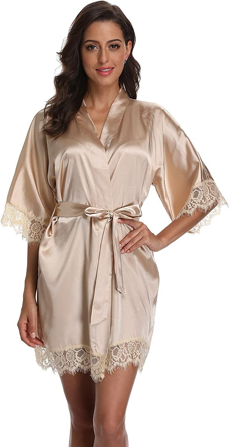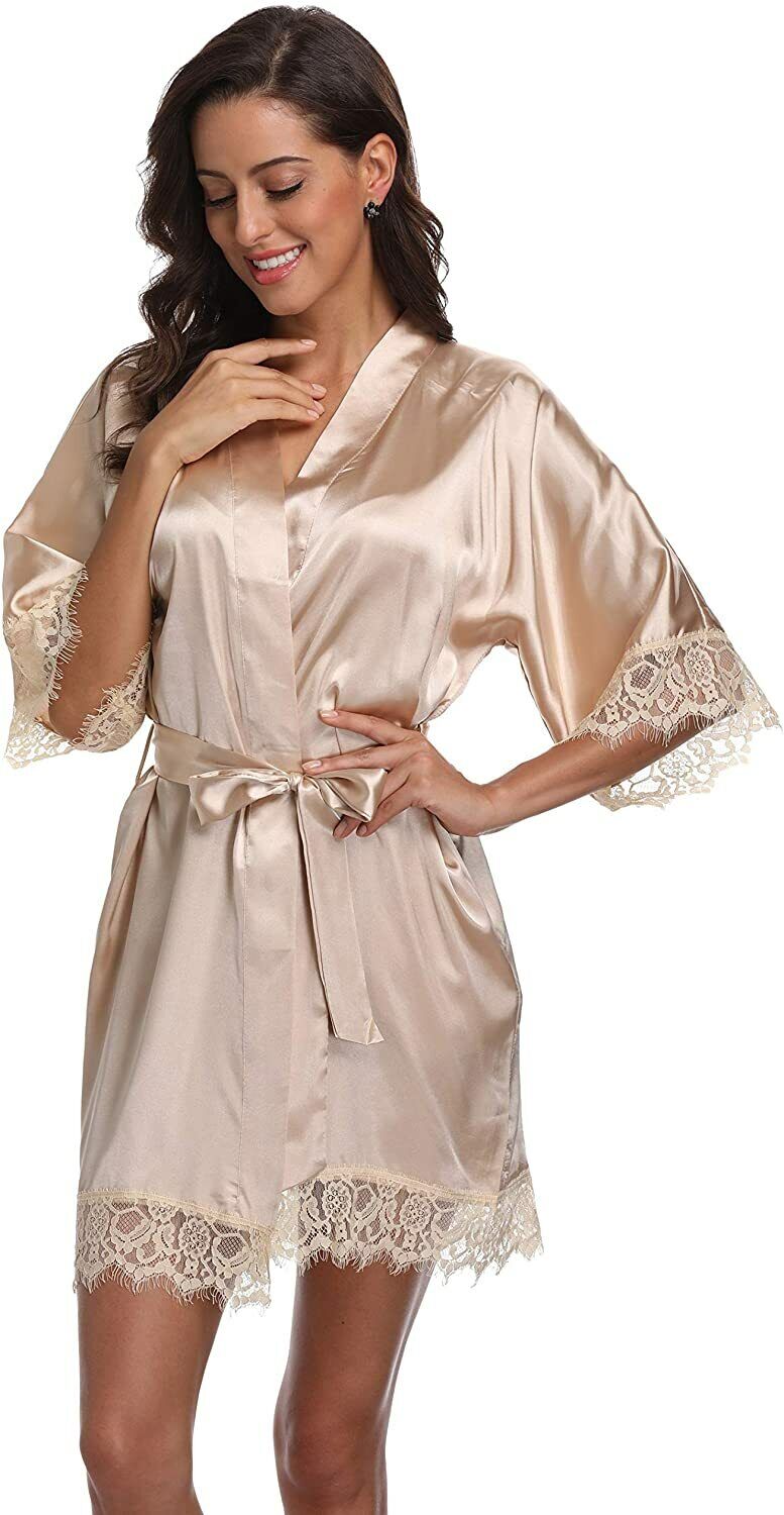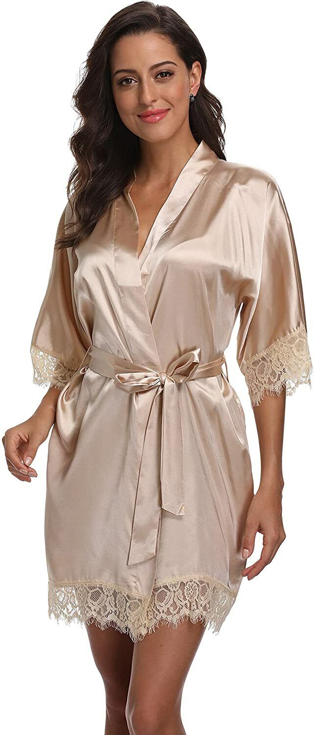 Women's Lace-Trimmed Satin Robe   Women's Lace-Trimmed Satin Robe   Women's Lace-Trimmed Satin Robe