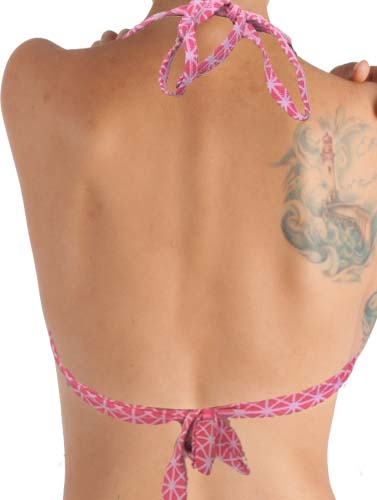 Women's Pink Printed Halter Bikini Top bright floral print that stands out beautifully against the crisp light pink hue.Featuring halter neck tie and back tie with front circle .Why Halter Bikini Top ??
