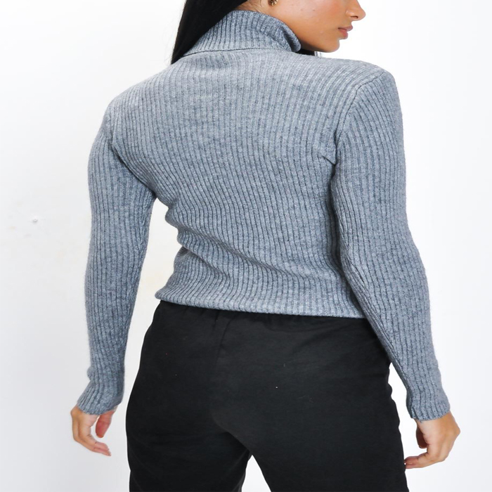 Women's Slim Fit Grey Turtle Neck Sweater