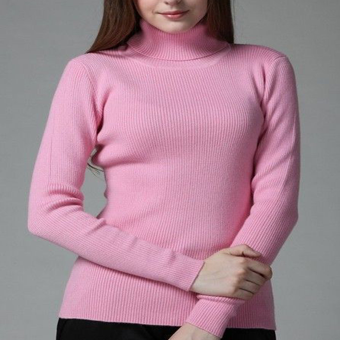 Women's Smooth Cashmere Pink Turtle Neck Sweater[/caption]